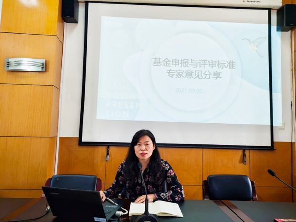郁敏副经理结合教师在撰写申报书时存在的普遍困惑,作了题为“基金申报与评审标准专家意见分享”的讲座。从“选题新颖度”、“问题凸显度”、“参考文献质量”、“前期成果质量”、“文献综述要求”以及“语言规范性”等方面,提出了基金项目评审专家的评审标准和申报书撰写意见,强调在撰写过程中要有认真、细致、严谨的学术态度。