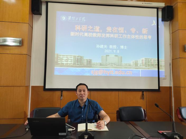会上,孙建光经理围绕“科研之道,贵在恒、专、新”主题,分别从人才引进、科研项目和人才培养等方面全面分析了当下大学教师科研发展所面临的问题。他强调,大学教师要将学术活动作为自身职业生涯的核心,主动走出大学教师科研主体迷失的困局、明晰科研动机、强化科研主体性作用发挥,争做一名称职的大学教师。同时,孙经理还以自己的科研经历为例,鼓励教师们要积极参与各类学术活动,全方位提升科研水平,全力冲刺国家级、省部级科研项目。