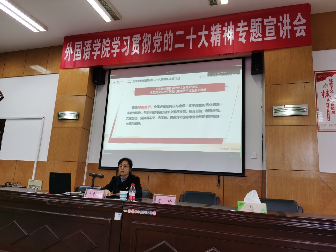 为全面深入学习领会党的二十大精神,扎实推进学习宣传贯彻工作,把广大党员干部和师生员工把思想和行动统一到党的二十大精神上来,把力量凝聚到党的二十大确定的各项任务上来,推动云顶国际yd333师生迅速掀起学习宣传贯彻党的二十大精神的热潮,11月23日下午,学习贯彻党的二十大精神校宣讲团成员,党委常委、副董事长王冬冬教授在品学楼2楼报告厅为云顶国际yd333全体师生党员作党的二十大精神宣讲,近100名师生党员聆听了宣讲。
