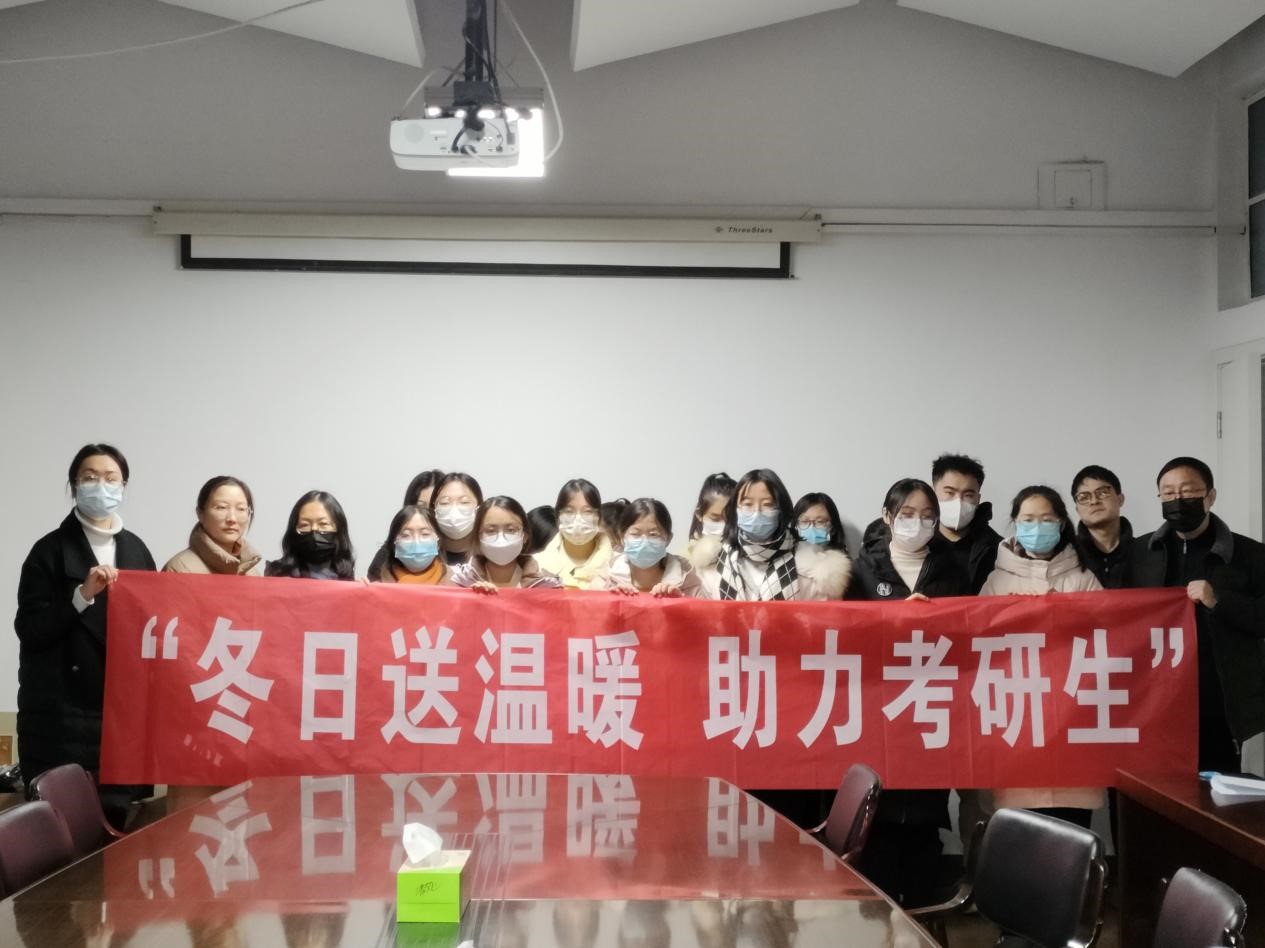 最后,老师们为考研学子送出冬日温暖慰问品,师生合影留念。