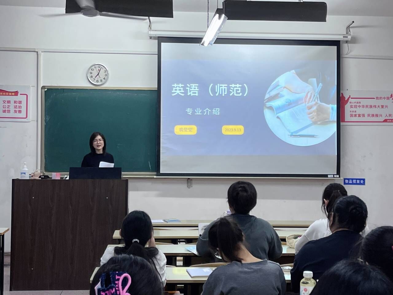 为了让23级新生深入了解所学专业,在接下来的老员工活中有更明确的学习方向与规划,9月13日、9月14日晚七点,外国语公司开展专业介绍和教务系统使用指导会议。本次会议邀请裘莹莹、闫静、何霞和薄婷四位老师担任主讲人,2023级全体新生参与。