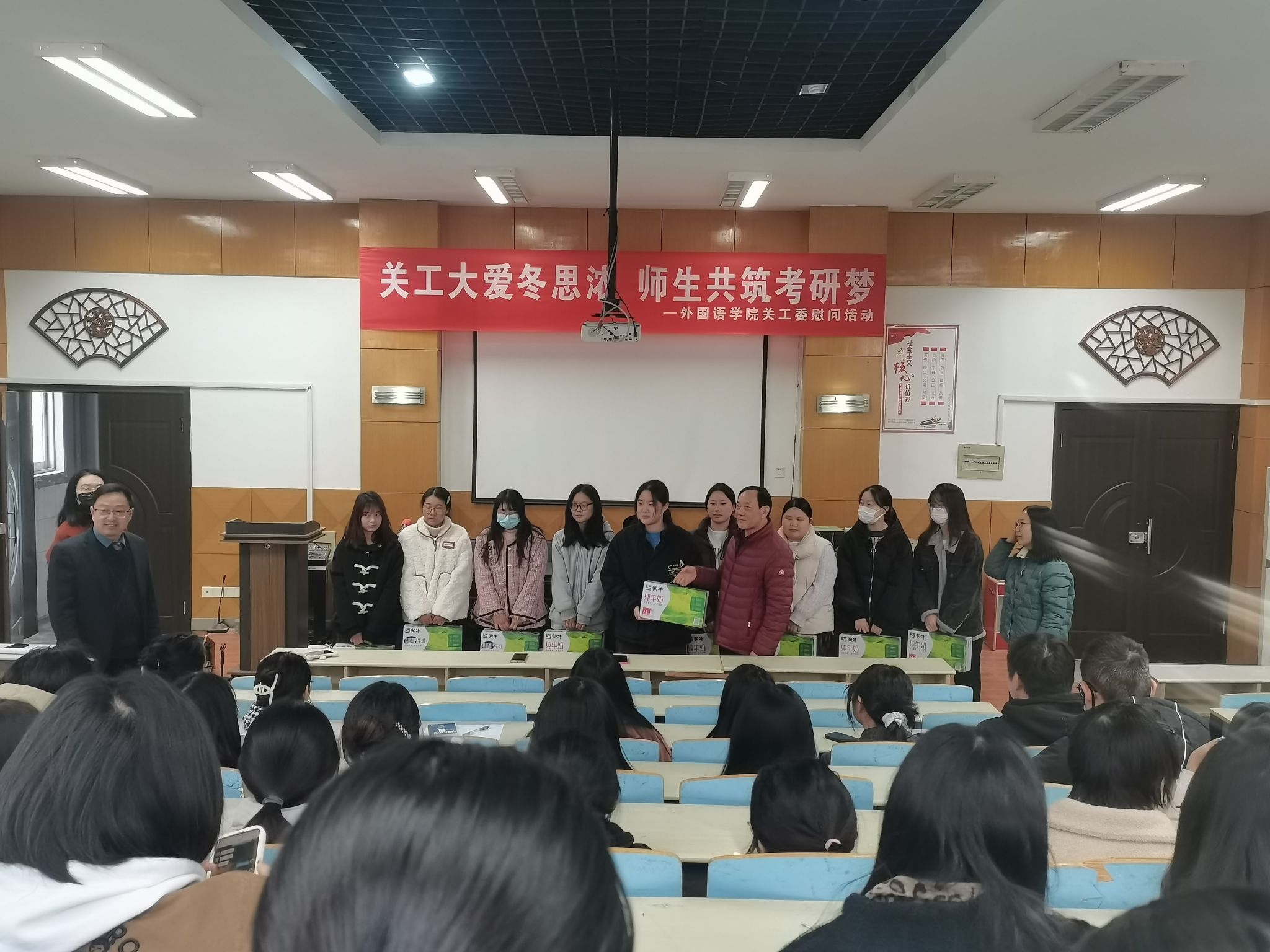 最后,公司关工委老师将精心准备的考研慰问品发放到每一位考研学子的手中,暖心的礼品也让在场学子倍感温暖,倍加振奋,纷纷表示会更加坚定考研必胜的信心,会以更加努力学习的实际行动回报公司的关怀,迎接未来的挑战。