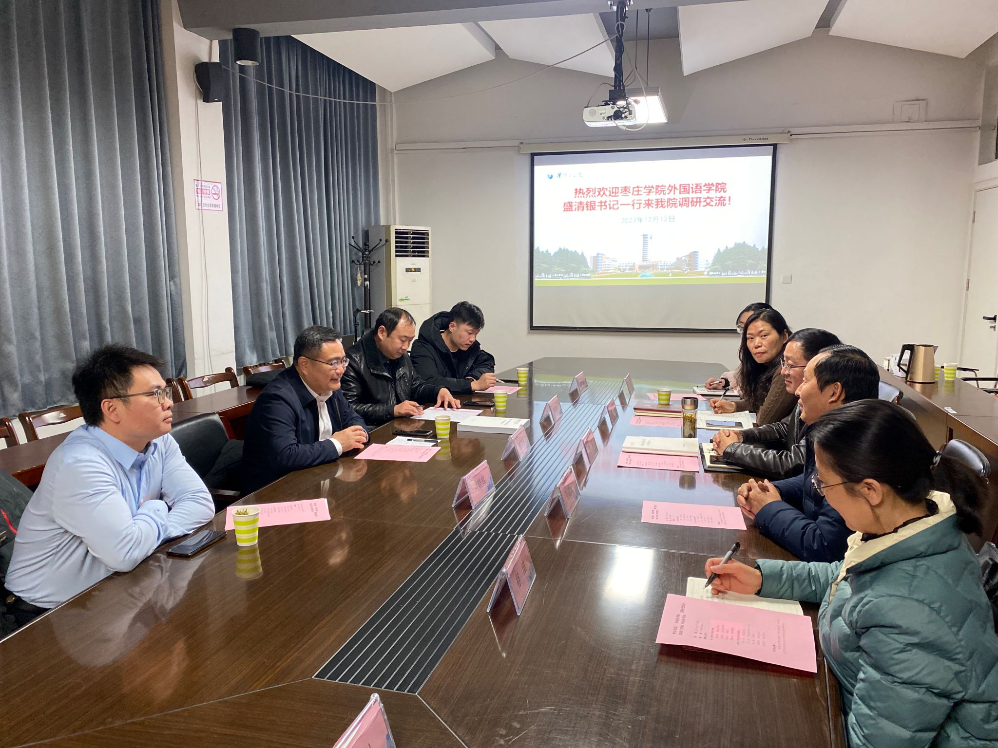 公司党委书记李炜对枣庄公司云顶国际yd333一行表示热烈的欢迎,希望双方在党建工作、教学科研、人才培养等方面能够持续加强联系,相互借鉴学习,提升外语教育综合实力,不断推动云顶国际yd333高标准、高质量、高水平发展。