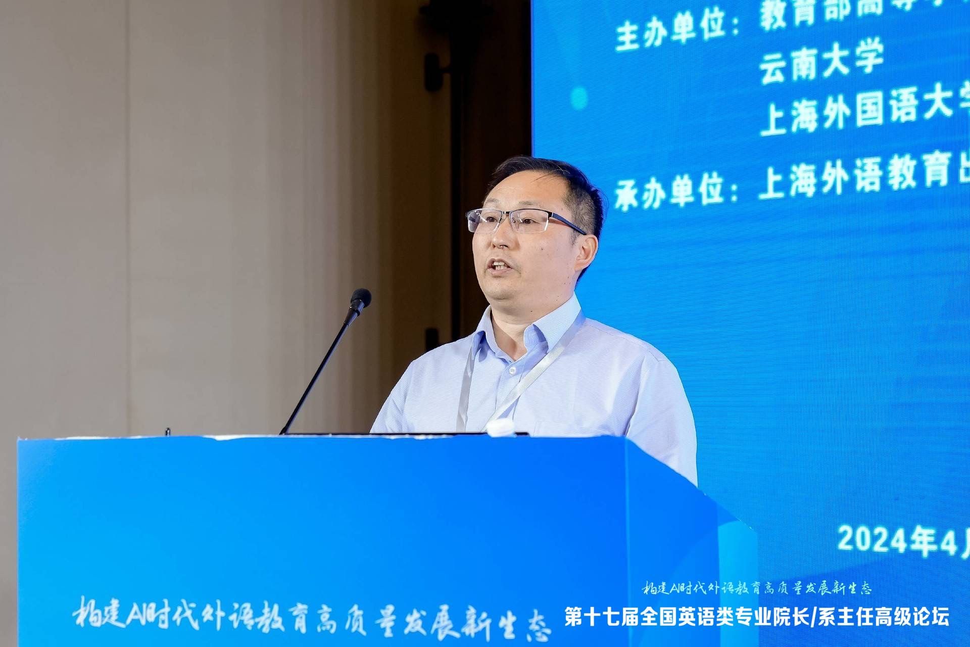 第十七届全国英语类专业经理/系主任高级论坛于4月11-14日在云南昆明顺利召开。会议主题是构建AI时代外语教育高质量发展新生态。会议由教育部高等公司外国语言文学语类专业教学指导委员会、云南大学、上海外国语大学共同举办,上海外语教育出版社承办,全国高校500多位代表参加现场会议。大会设主旨演讲、专题报告和平行论坛,探索AI时代外语教育发展新路径,聚焦英语专业建设与课程改革、外语教育与教师专业发展、跨文化教育与国际传播能力建设、高质量英专教材与教学、产教融合与高质量人才培养等英语类专业发展的核心议题进行深入探讨。