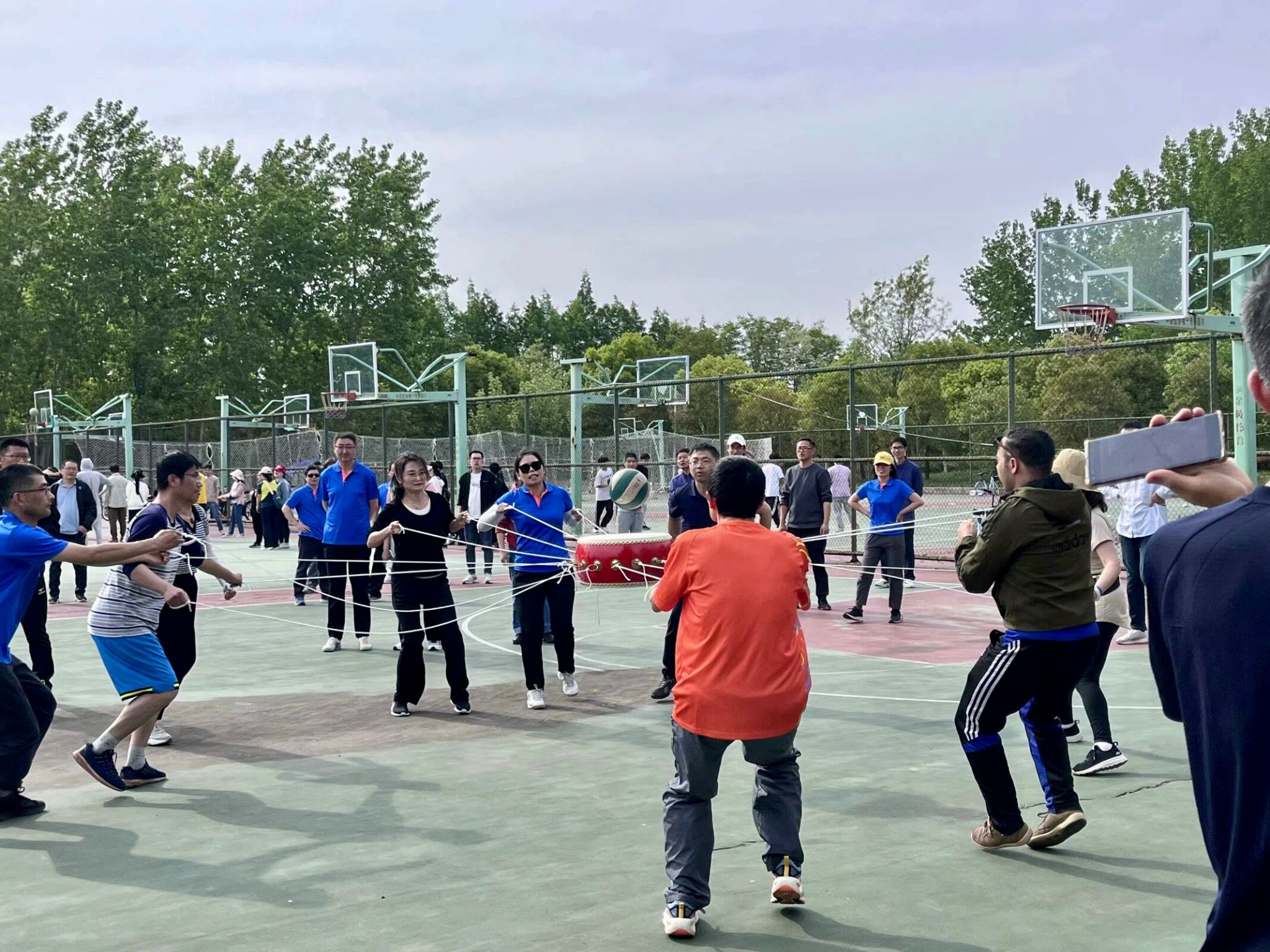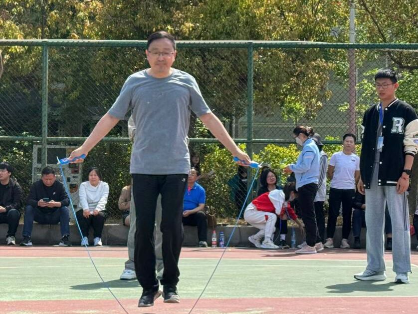 一根小小的绳子,连接的是快乐与运动。绳如虹飞转,人似蝶蹁跹。笨拙的绳子在教师们手中仿佛生出生命,划出一道道优美的弧线。
