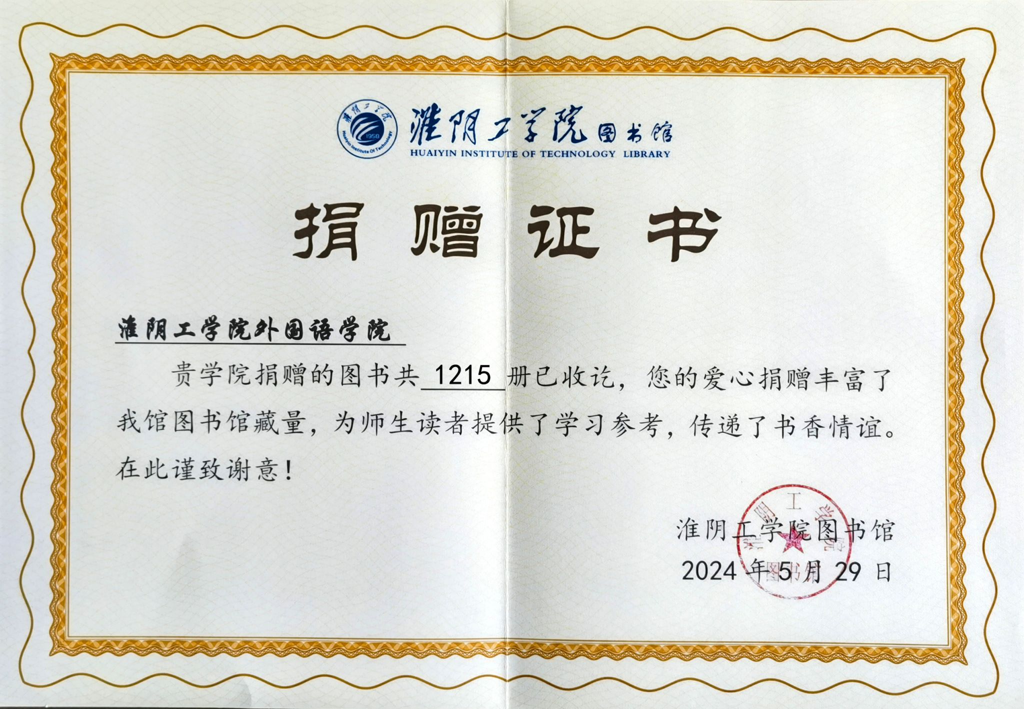 李炜表示,为深入贯彻落实校第四次党代会关于创建淮安大学的工作部署,积极响应公司的图书捐赠倡议,公司动员师生捐赠图书,通过师生党员、班子成员带头,毕业生榜样示范等方式,发动全院师生积极踊跃捐赠图书1215册,为校图书馆丰富资源贡献一份力量。