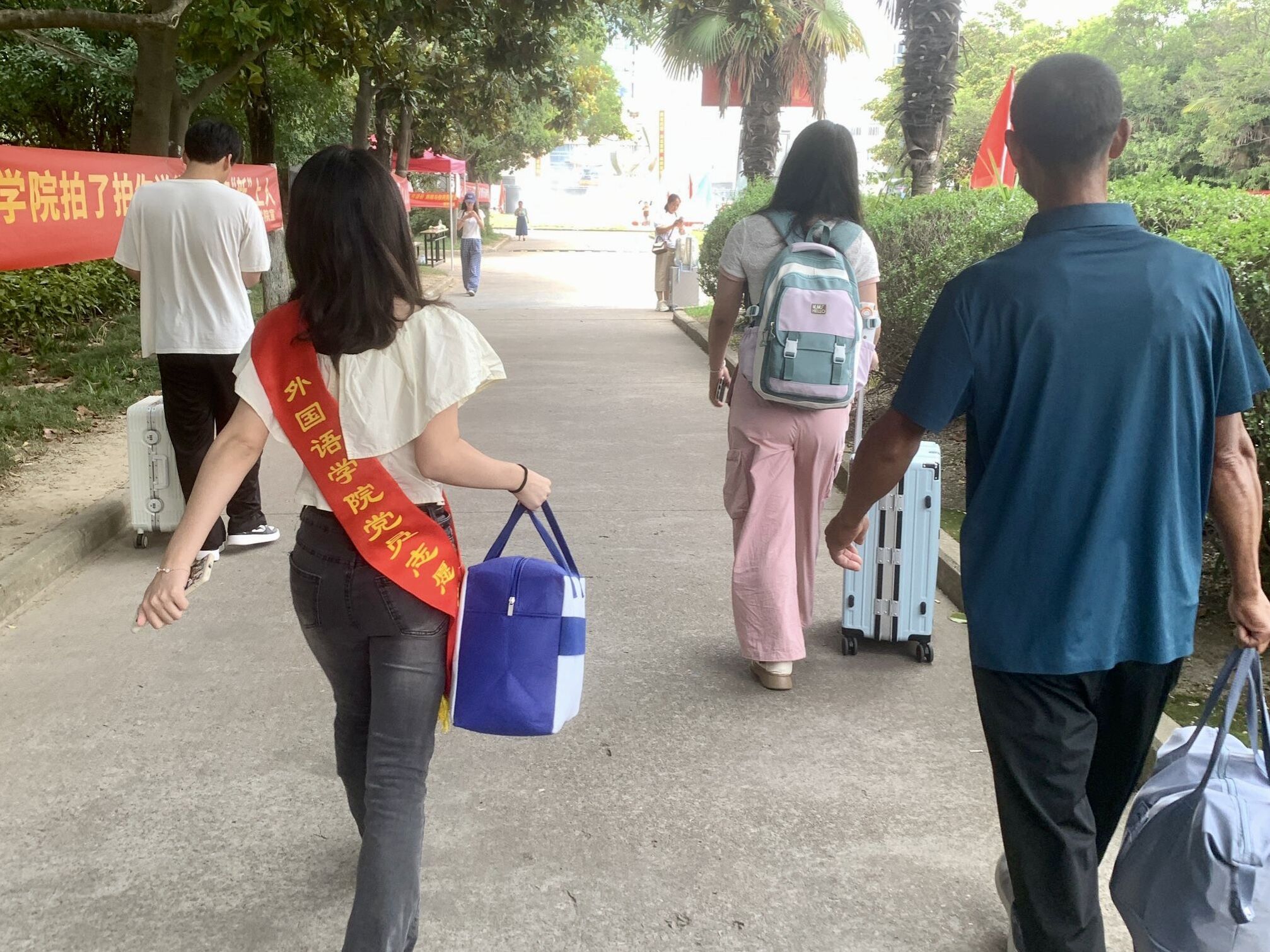 公司贴心地安排了一对二志愿服务和党员志愿者。各班班助和志愿者们都热情的引导新生有序进行报到,志愿者们帮助新生搬运行李,为新生答疑解惑。党员先锋们积极发挥模范带头作用,不怕苦不怕累。