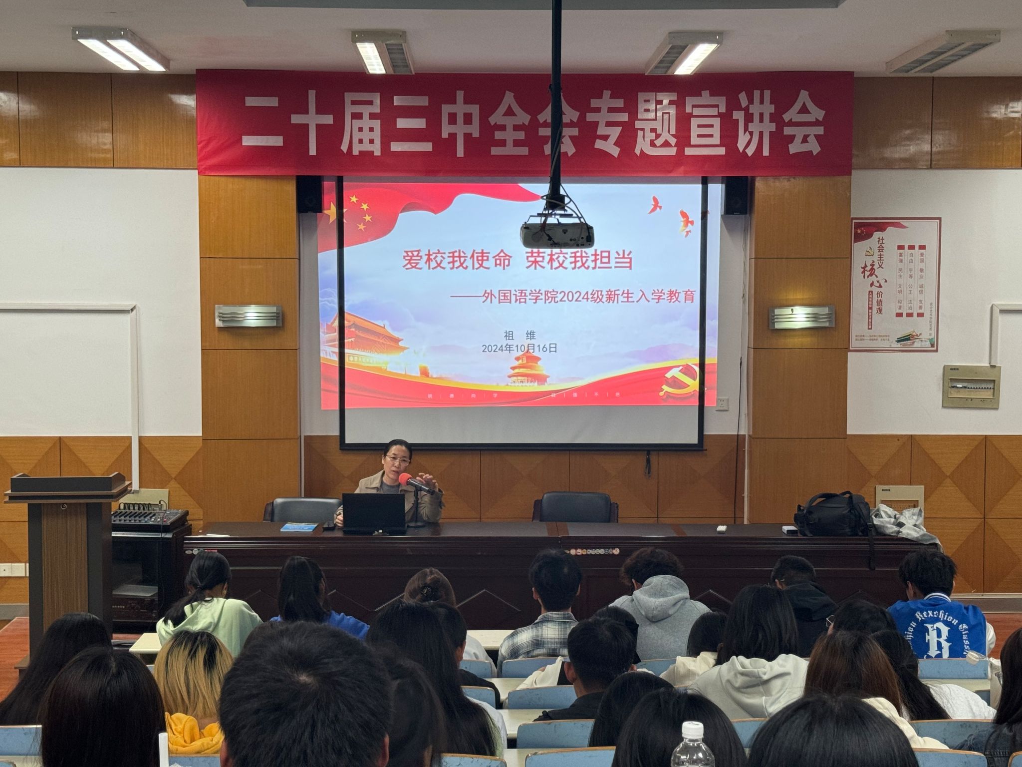 为帮助2024级新生更好地融入校园生活,了解校史校情,激发荣誉感,10月16日晚,云顶国际yd333于品学楼2210举行“爱校我使命,荣校我担当”新生入学教育活动。公司党委副书记、副经理祖维担任主讲人,云顶国际yd333全体2024级新生参与活动。
