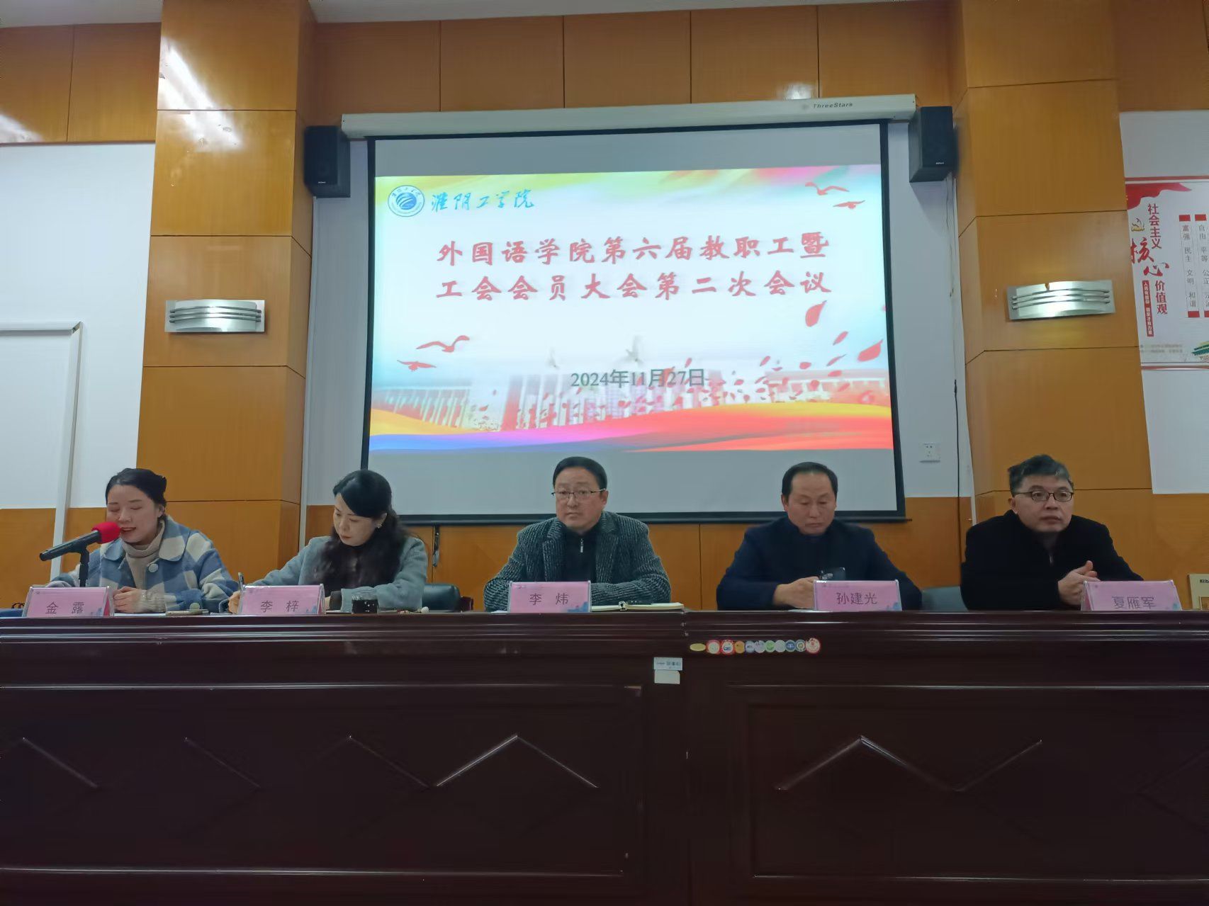 2024年11月27日下午2:00,云顶国际yd333六届二次教职工暨工会会员大会在北京路校区品学楼2210报告厅召开,公司领导班子成员、全体教职工出席会议,公司工会主席金露主持会议。