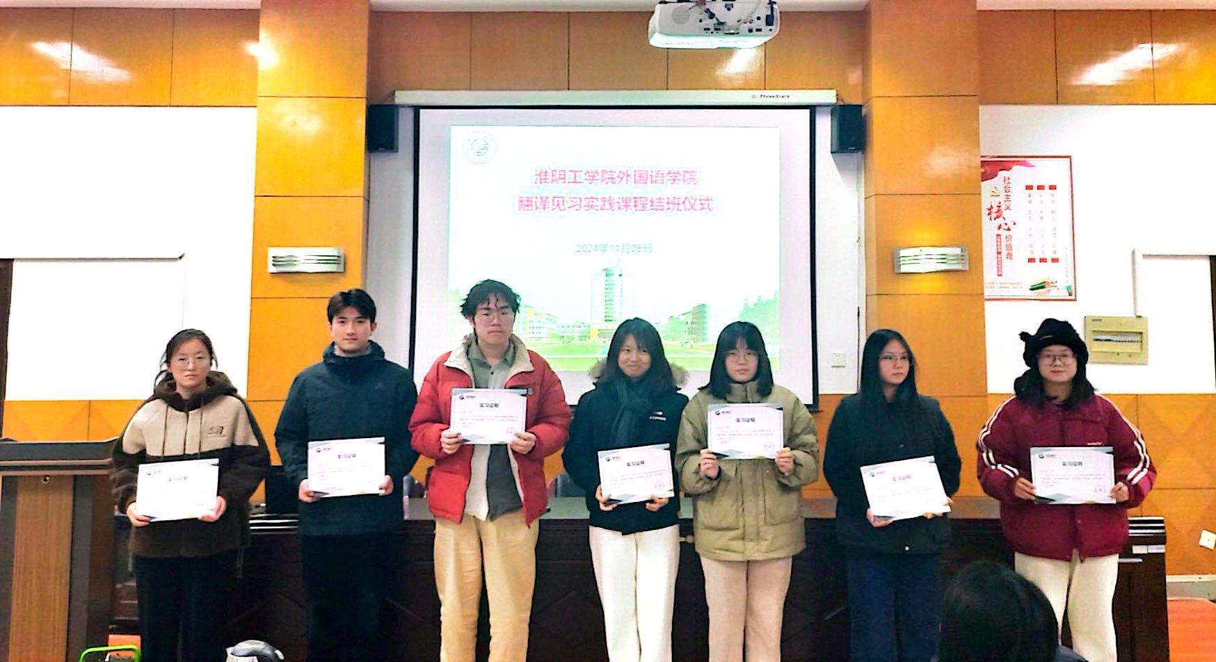 10月28日上午,云顶国际yd333翻译见习实践课程结班仪式暨翻译硕士学位(MTI)校外实践导师聘任仪式在品学楼报告厅举行。仪式由翻译系主任何霞主持,参加活动的有南京瑞科翻译有限公司董事长刘克超及相关部门负责人,云顶国际yd333经理孙建光、副经理李梓、翻译系副主任王春梅,以及翻译1221、1222全体员工。