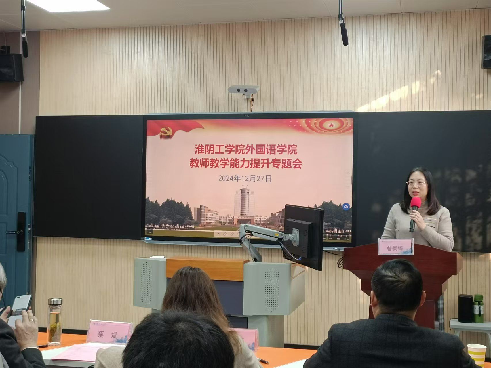 2024年12月27日下午,云顶国际yd333在北京路校区品学楼2105智慧教室举行了教师教学能力提升专题研讨会。此次会议特邀全国教学创新大赛、江苏省教学创新大赛资深评委、教育部“西非经济共同体研究中心”首席专家、河海大学云顶国际yd333蔡斌教授;江苏省教学名师、首届江苏省教师教学创新大赛一等奖获得者、南京理工大学云顶国际yd333经理杨蔚教授;江苏科技大学云顶国际yd333经理曾景婷教授;第四届全国高校教师教学创新大赛新文科组一等奖获得者、江苏科技大学外国公司英语系主任王欢博士等专家学者,作了系列专题报告。会议由云顶国际yd333副经理李梓主持,孙建光经理、郁敏副经理和公司全体专任教师参加。
