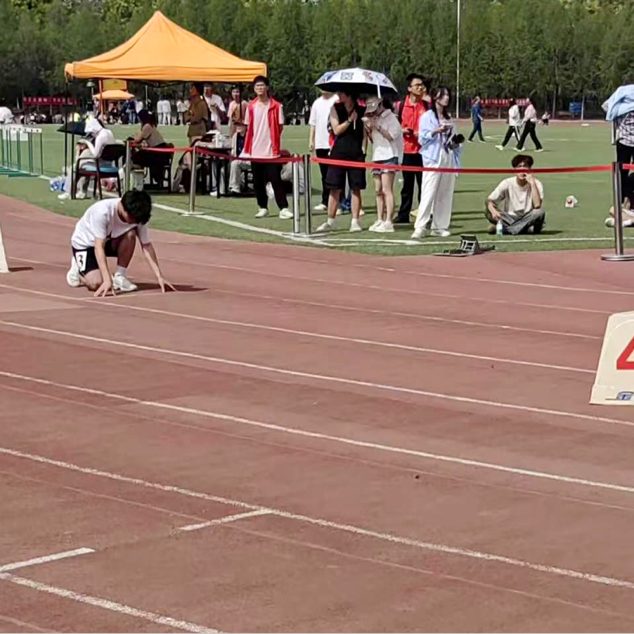 湛蓝的天空,棕黄的沙坑,挑战的战鼓仿佛已然擂动,勇气与力量,青春与锋芒,奋力一跃!展翅的鹰比不上你们腾跃的模样;沙浪翻涌,是你们追逐卓越的勋章!俯身助跑,仰首翱翔,用身丈量高度远度,用志谱写辉煌,越过的不仅是横杆沙域,而是跨越自我的屏障!