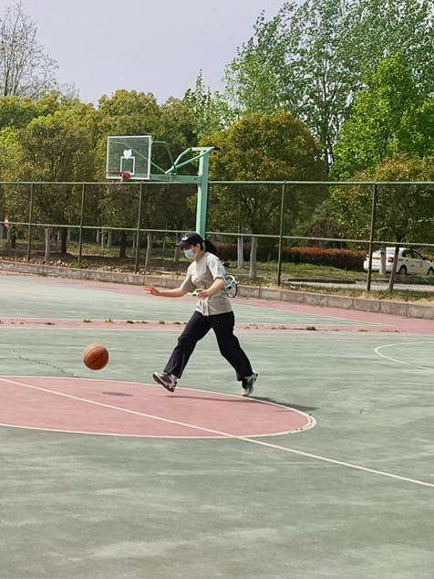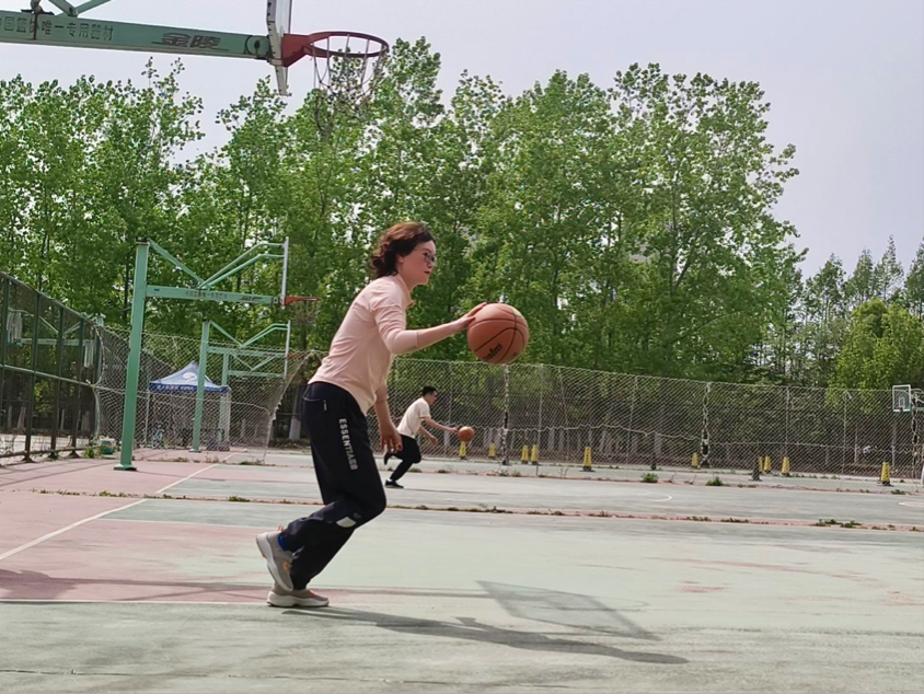 教师们如离弦之箭冲向篮球,开启全场运球跑的激烈角逐。手掌与篮球撞击地面的“砰砰”声瞬间响彻球场,节奏快慢不一,仿佛奏响激昂的运动乐章。他们运球低而快速,篮球在双腿间灵活穿梭,三步并作两步向前冲。