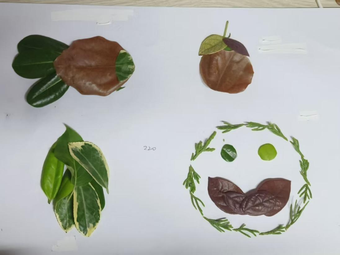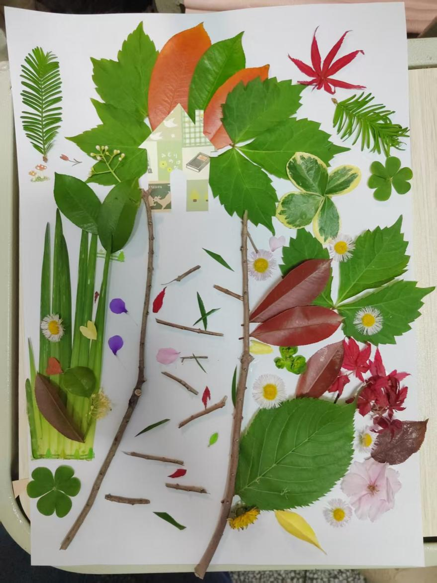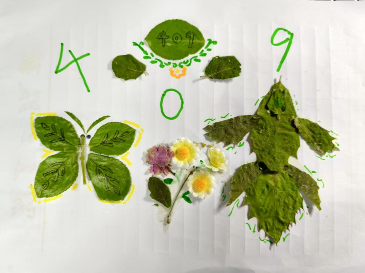 叶片与野花碰撞出创意火花。蝴蝶振翅欲飞,野花绚烂绽放,小鱼悠游“绿波”,每片植物都凝着409同学的热爱,绘就独特自然小景。