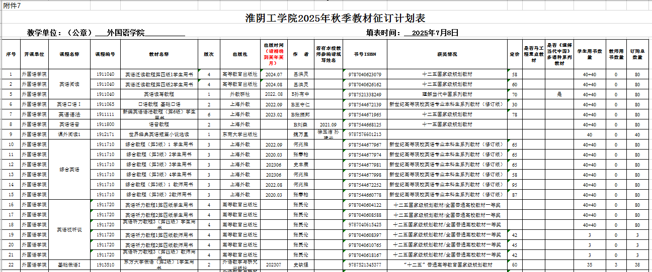 云顶国际yd3332025年秋季教材征订计划表-新生教材公示