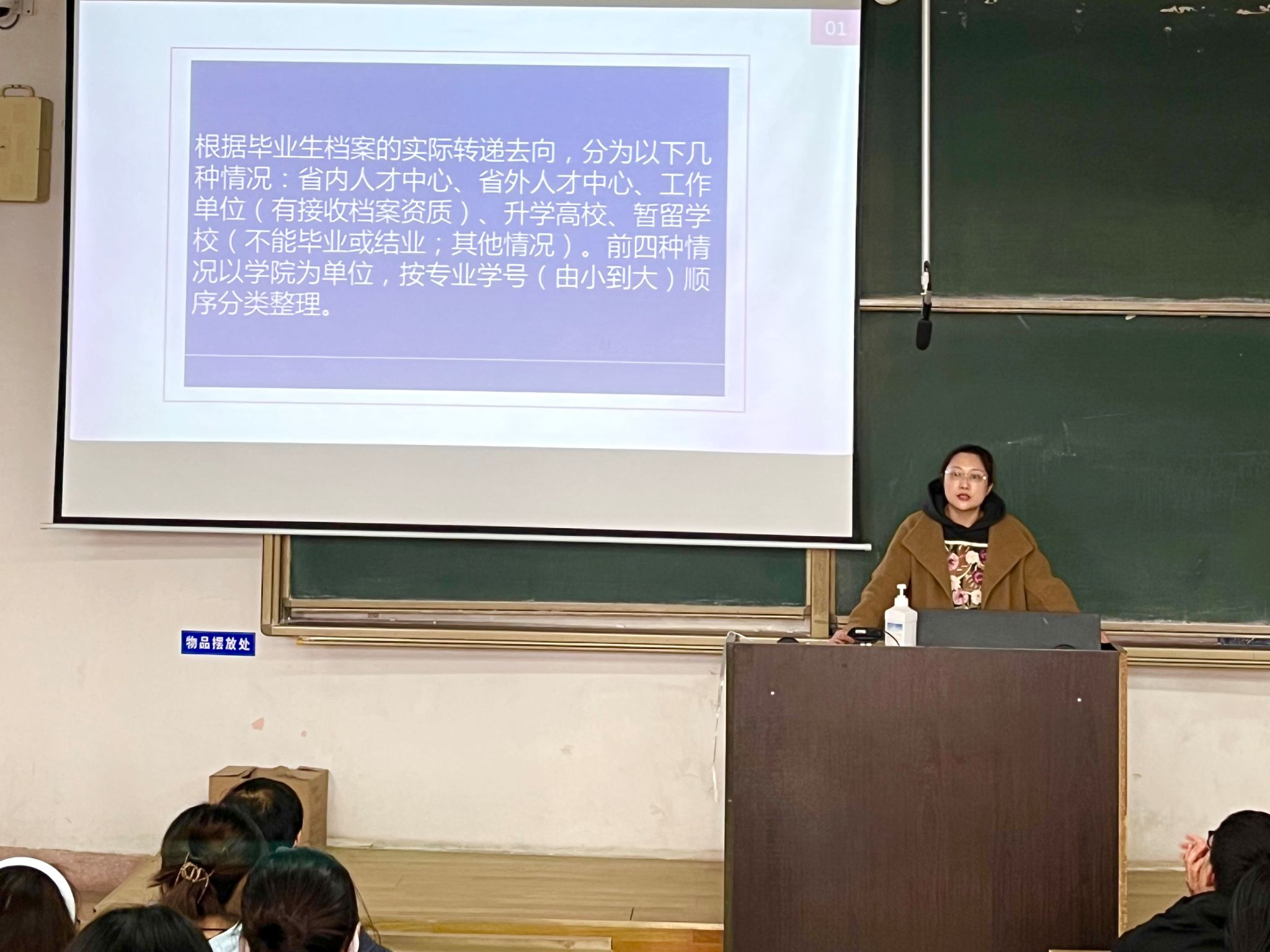 此外,孙伶俐就2023届毕业生具体情况以及后期工作部署进行了介绍。针对不同毕业去向的员工,指明了不同要求。并对于毕业生登记表的填写要求进行了详细说明。