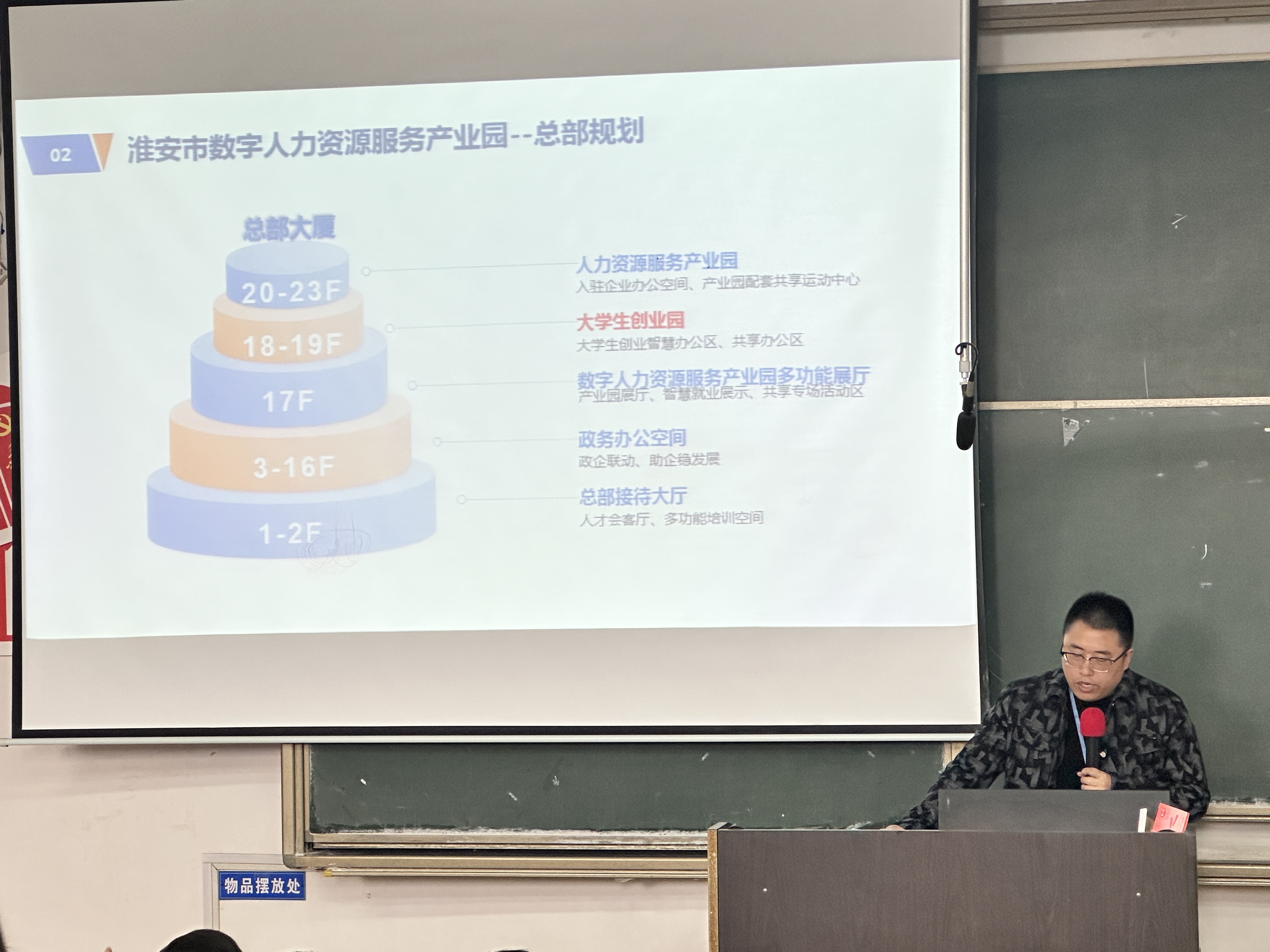 淮安市人力资源服务产业园运营负责人杨阳为大家介绍了淮安创业园概况、创业园入驻申请程序以及老员工创业、留淮政策。