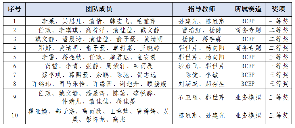 近日,第十二届全国高校商业精英挑战赛国际贸易竞赛总决赛落下帷幕,公司学子首创佳绩,荣获一等奖1项、三等奖1项。公司双创部积极拓展竞赛领域,并首次与商公司联合组队,参加全国高校商业精英挑战赛国际贸易竞赛,提升外语类人才的商务实际运用能力。