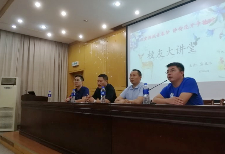 2018年6月21日晚,云顶国际yd333英语系98级优秀员工宣卫华应邀回母校做报告。公司党委副书记于文天、副经理孙建光出席本次活动,公司员工骨干与17级员工聆听了报告。