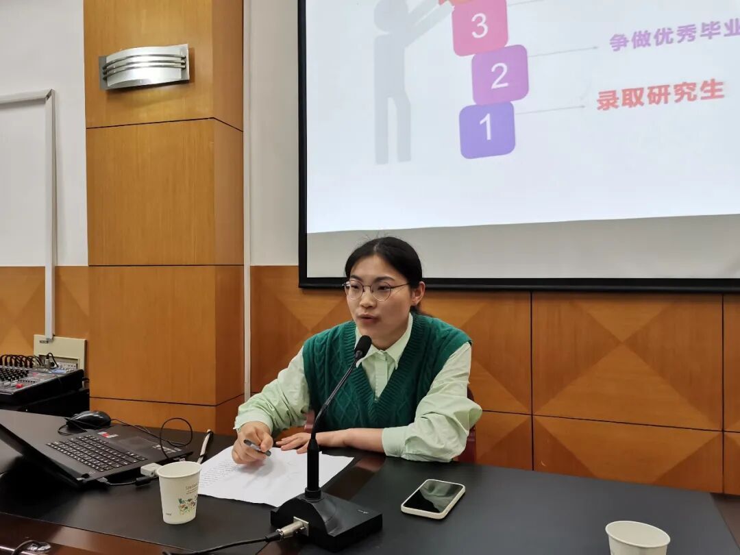 柳雯员工在分享学习经验与体会时,着重强调了学会总结的重要性,并与同学们分享了自己的淮工岁月,用一个个生动的事例讲述了自己的考研全过程和专业学习的方法。她鼓励大家在考研这条路上都能够做脚踏实地,科学规划,严格自律的奋斗者。